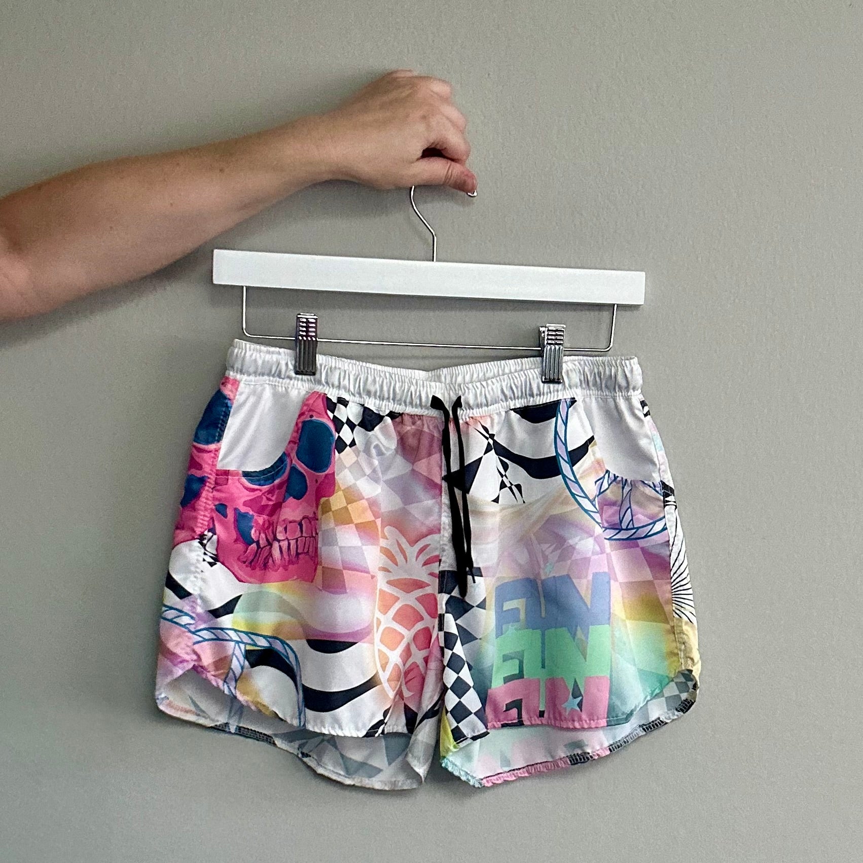 - Neon pastel gradient + skull + retro checker print = full statement energy