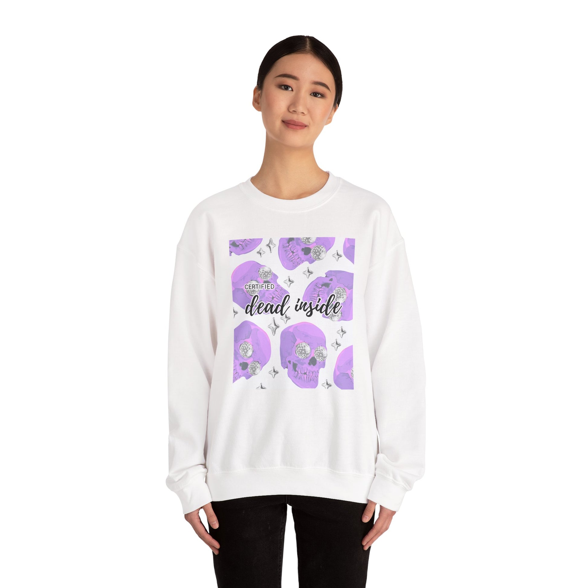 Stay cozy. Stay sarcastic. Stay dead inside. The Certified Worst Dead Inside Crewneck is your new uniform for giving zero energy but still looking like a whole vibe. Purple skulls with glittery disco-ball eyes + bold typography = dark humor meets cozy streetwear.