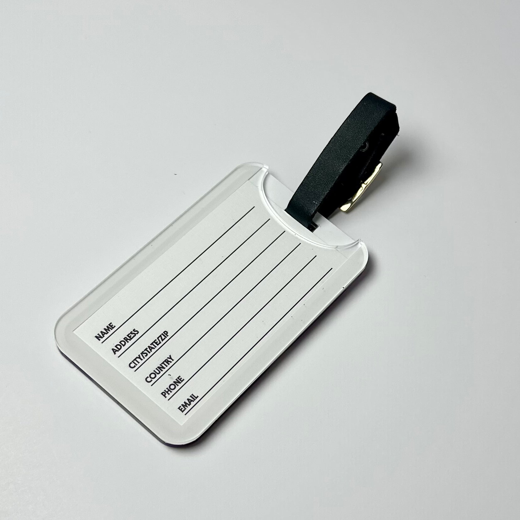 Durable acrylic + adjustable leather strap = practical, but make it punk. Double-sided design holds your info without killing your vibe. Perfect for anyone who travels like they own the airport… or just wants to look unbothered while doing it.